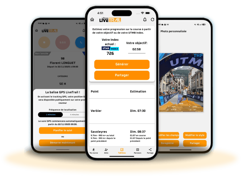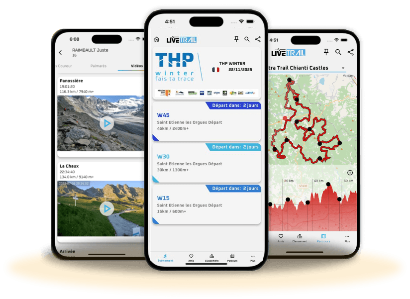 • Get a better overview of the race evolution thanks to runners equipped with the GPS on the LiveTrail App